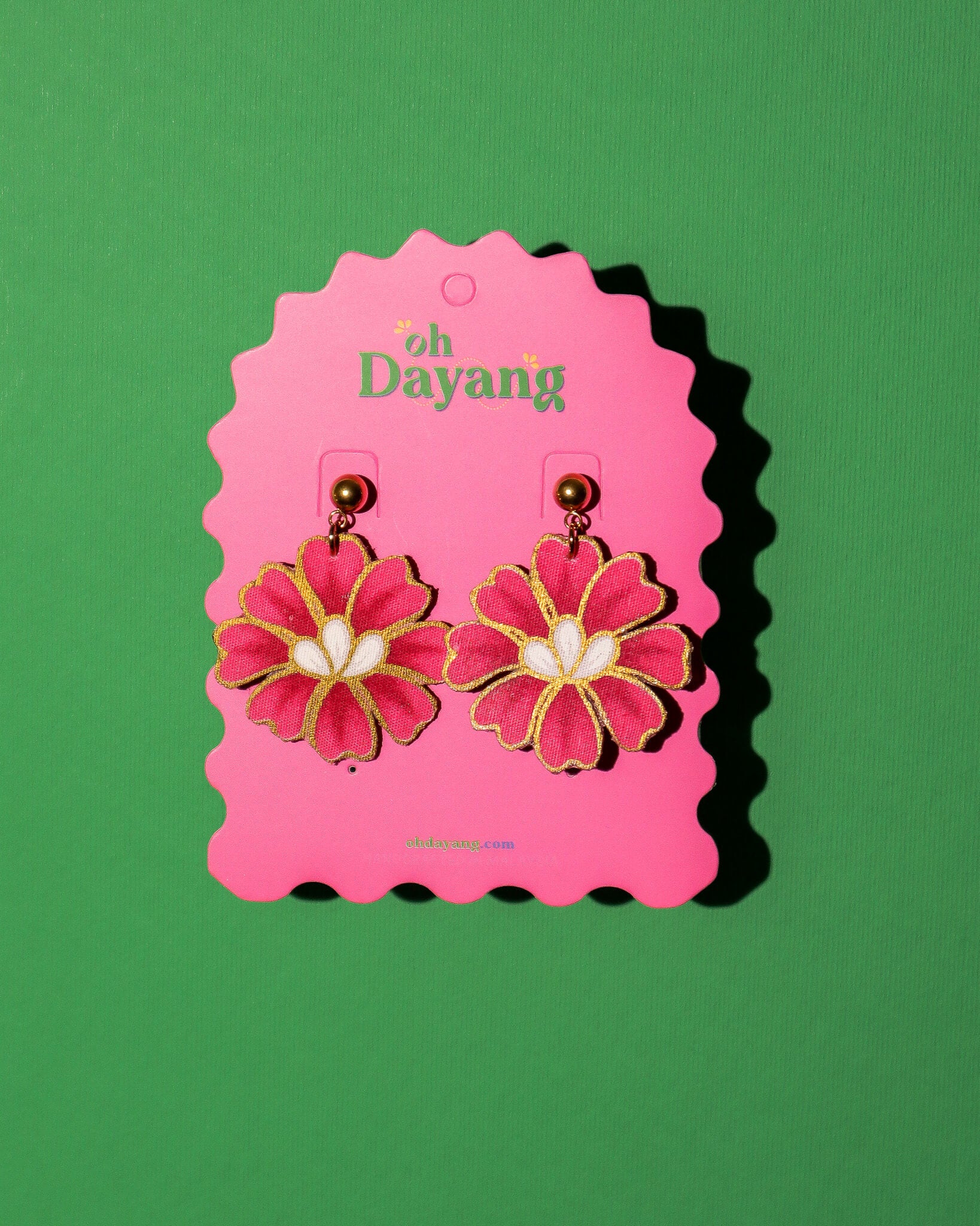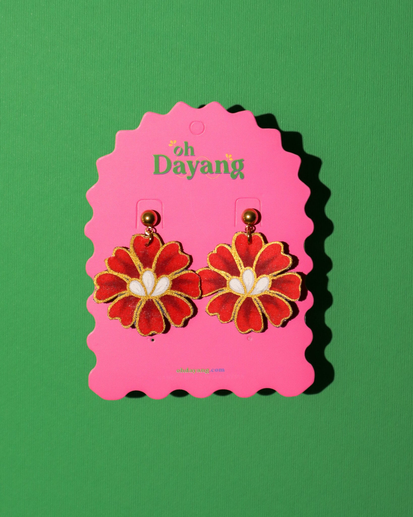 Add a pop of playfulness with our Dangly Bunga earrings—handmade batik beauties that shimmer with every move. Perfect for everyday flair or bold nights out.