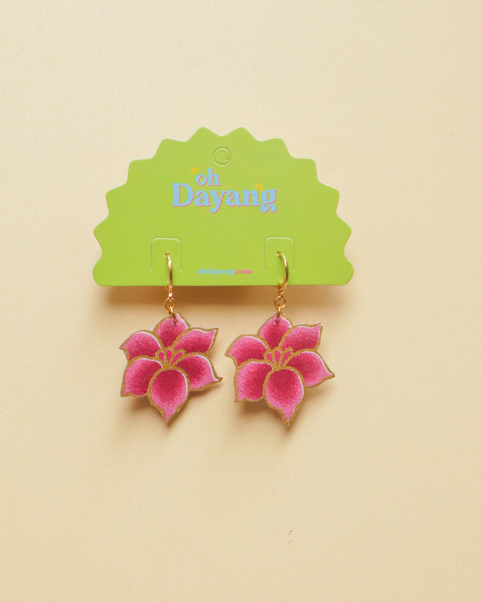 Add a touch of quirky tradition to your modern outfit with our Bunga Batik Earrings. Featuring bunga motives inspired by traditional batik sarongs, these earrings are a unique and cute addition to any look. Get ready to turn heads and make a statement with these pretty accessories.